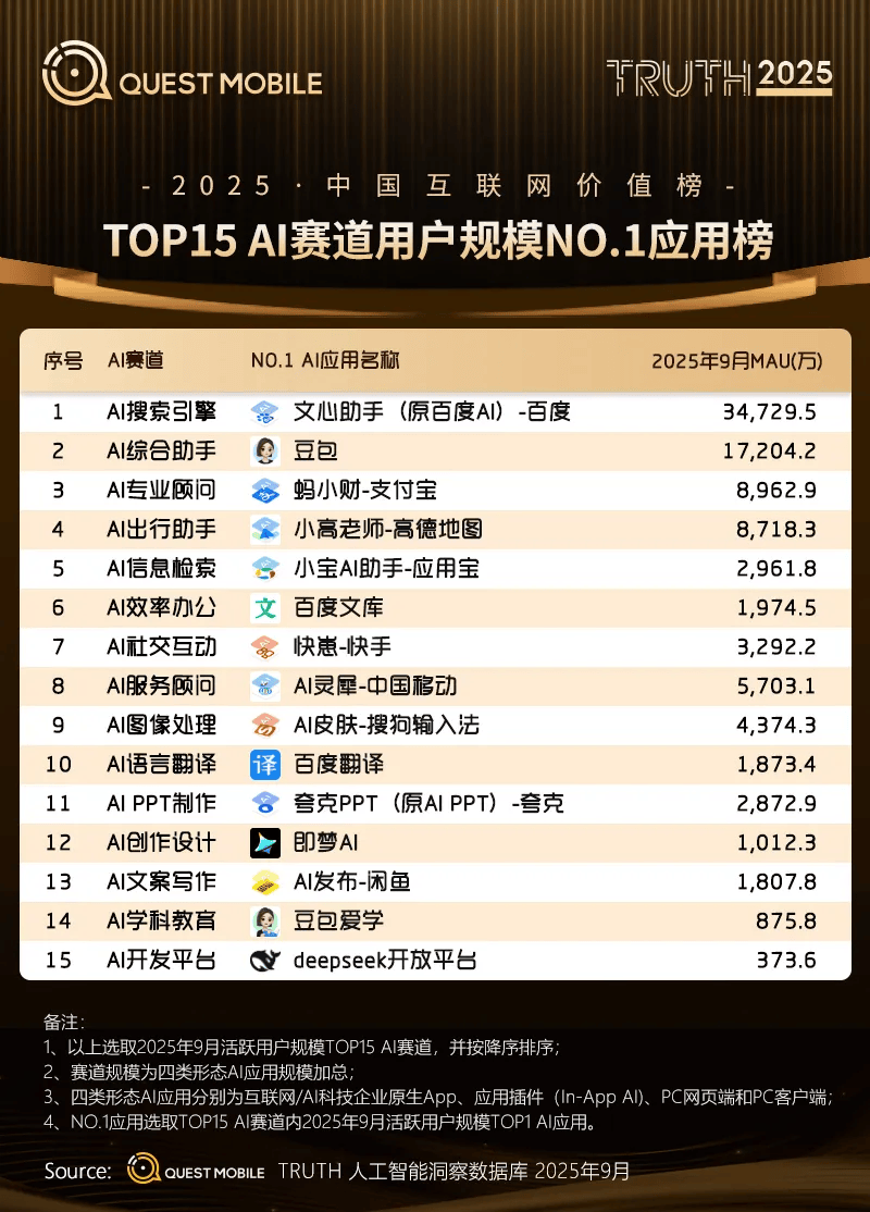 取豆包、千问构成国内三大AI超等入口。实现了搜刮取AI的深度沉构,此前,文心帮手是百度App推出的AI智能帮手,「企业App AI升级成效Top榜」中排名第二。百度App文心帮手正在「AI赛道用户规模NO.1使用榜」中名列第一,据海外权势巨子《华尔街日报》报道,查看更多1月27日,是集深度思虑、多模态交互取全场景办事于一体的万能搭子。百度App文心帮手月活用户数已冲破2亿,据悉,QuestMobile发布《2025 中国互联网价值榜》,