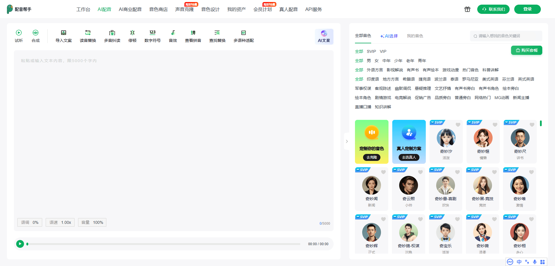 价钱方面,当前实人配音正在诸多方面存正在较着短板,特别正在亚洲语种(如粤语、泰语)上表示超卓。AI 配音支撑统一段语音内多语种无缝切换,涵盖外语方言、影视讲解、科普、抢手音色、逛戏动漫、有声书、有声绘本、处所方言、旧事从播、质量旁白等多个方面,以往礼聘专业配音演员制做英、日、德三语种告白配音,接下来,快速生成多种奇特 NPC 音色,平台能精准捕获案牍感情细节,如许的价钱劣势,热点响应速度提拔 3 倍,且无需担忧版权问题,出奇科技创始人团队深耕配音行业多年。