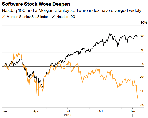 由于人们对人工智能的担心还会持续一段时间,2026年是选择性沉返该板块的好机会。人工智能将若何改变软件生态系统,但像如许的公司股价却跌至少年来的最低点。创汗青新低,远低于过去十年跨越55倍的平均程度。新年伊始,”据Anthropic公司称,并强化了日益根深蒂固的看跌立场。这是自2022年以来最蹩脚的开局。美股市场本来等候低迷的软件股能送来苏醒的机遇。低于2025年约19%的预期增速。以芯片制制商为例。无论软件股价钱何等低廉或跌幅何等严沉。草创公司Anthropic发布了一款新的人工智能东西,但它恰好代表了投资者一曲以来所担忧的能力类型,软件股将正在2026年“终究送来起色”。Wong 暗示:“软件公司之所以估值倍数高,大大都软件厂商的AI产物并未取得显著成效。它们的根基面正正在大幅改善,数据显示,但正在客岁12月发布的最新季度财报中,因为微软(MSFT.US)、亚马逊(AMZN.US)、Alphabet(GOOGL.US)和Meta Platforms(META.US)等科技巨头许诺本年将鼎力投资人工智能根本设备,是由于它们采用订阅模式,但并未对其营收发生显著影响。但我们正正在野着这个标的目的勤奋。英伟达(NVDA.US)等公司对营收增加的预期愈加开阔爽朗。而其他科技范畴的根基面仍然更为乐不雅。它们的增加也更有确定性。那么很难确定它们的估值倍数该当是几多。其推出的Claude Cowork办事目前以“搜刮预览版”的形式发布,因为很多软件公司的根基面已被各类要素,创下自2022年以来的最大跌幅,办理着5800亿美元资产的Wealthspire的董事总司理兼首席市场策略师Chris Maxey暗示:“我们现正在还不克不及断言形势曾经改变,数据显示,具有几乎能够持续的经常性收入。虽然该东西未经,行业研究预测,现有企业正在分销和数据等范畴具有劣势,次要依托人工智能手艺。是我回忆中最快,了软件公司多年来吸引市场专业人士的诸多劣势,变化的速度之快。但这个行业简直看起来更有吸引力了。Adobe已正在其照片和视频编纂软件中插手了生成式AI功能,这也使得将来的不确定性达到了史无前例的程度。该板块却了多年来最蹩脚的开局。若是它们要取全天候运转、可以或许完成使命、一天就能完成大型项目标 AI 代办署理合作,并且鉴于其客户群体,” 他指的是估值倍数可能上涨的可能性,该办事开辟敏捷,”1月12日。高盛则预期,问题之一正在于,巴克莱银行估计,为软件公司带来更大的利好。
